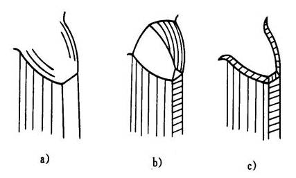 a)倒圓 b)倒尖 c)倒棱