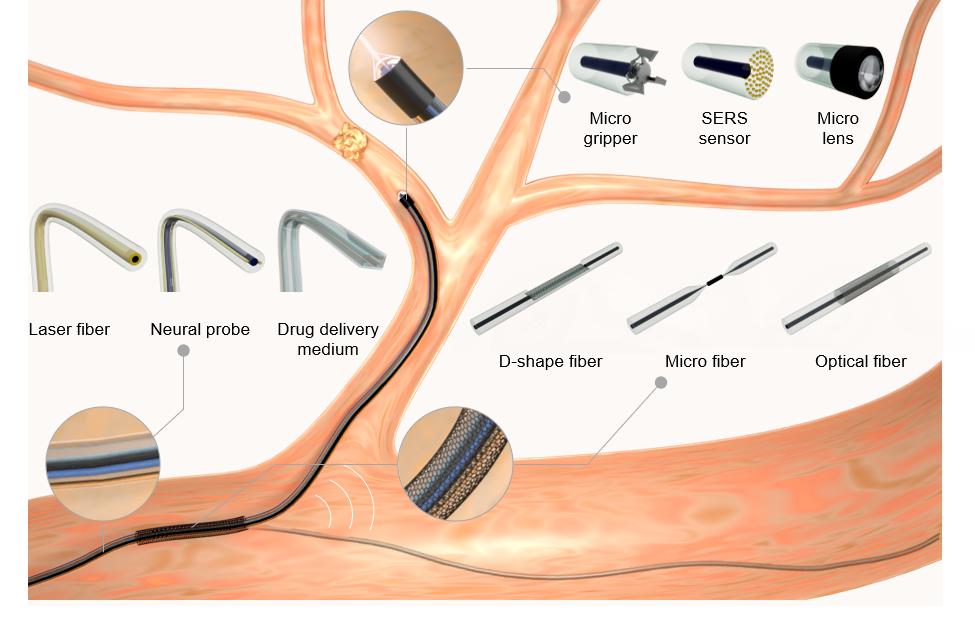 微創(chuàng)手術具有安全、切口小和術后恢復快等獨特優(yōu)勢,極大促進了精準外科醫(yī)療的發(fā)展。隨著現(xiàn)代醫(yī)學和生物工程學等學科的發(fā)展,手術刀已從單一的金屬刀具發(fā)展到超聲刀、射頻電刀等,這極大地提升了手術效率。盡管如此,在復雜手術場景中,手術刀存在器件尺度大、剛性強和操控性不足等問題,嚴重降低了手術治療效果。激光手術刀技術的出現(xiàn)是精準外科醫(yī)療領域的重要里程碑,大量臨床研究證明其具有高消融精度和效率、出血少和副損傷小等顯著優(yōu)勢,在微創(chuàng)手術組織加工中具有廣闊的應用前景。然而,微創(chuàng)手術對于小尺度柔性激光能量傳輸介質(zhì)的機械和光學性能的高要求,以及傳輸介質(zhì)與醫(yī)療機器人的集成方式的局限性,給激光手術刀技術在微創(chuàng)手術中的深入應用帶來了巨大挑戰(zhàn)。